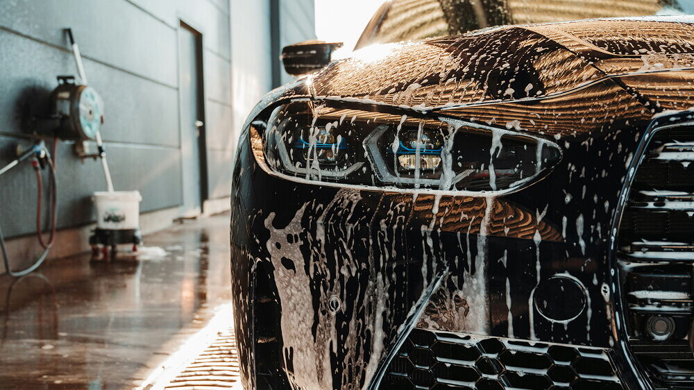 Fahrzeugoberwäsche mit Wasserhochdruck, Schaumwäsche mit Bürsten, Felgenwäsche mit Bürsten, Trocknen inkl. Trocknungsmittel.